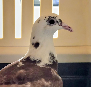 Pumpkin is an independent pigeon who has already experienced several home changes through no fault of his own.Because of this, he feels most secure and content in the company of other pigeons rather than relying on close human interaction